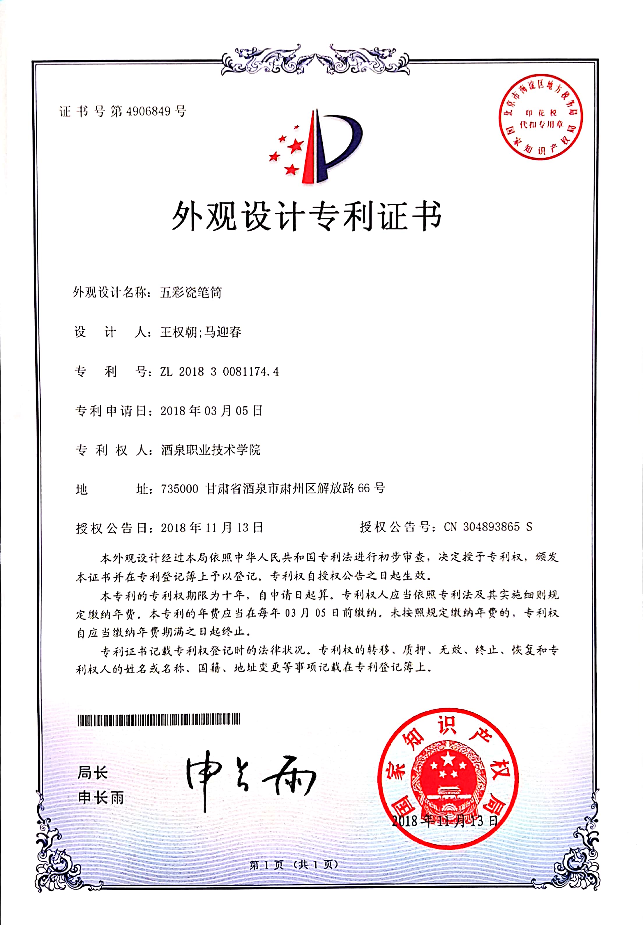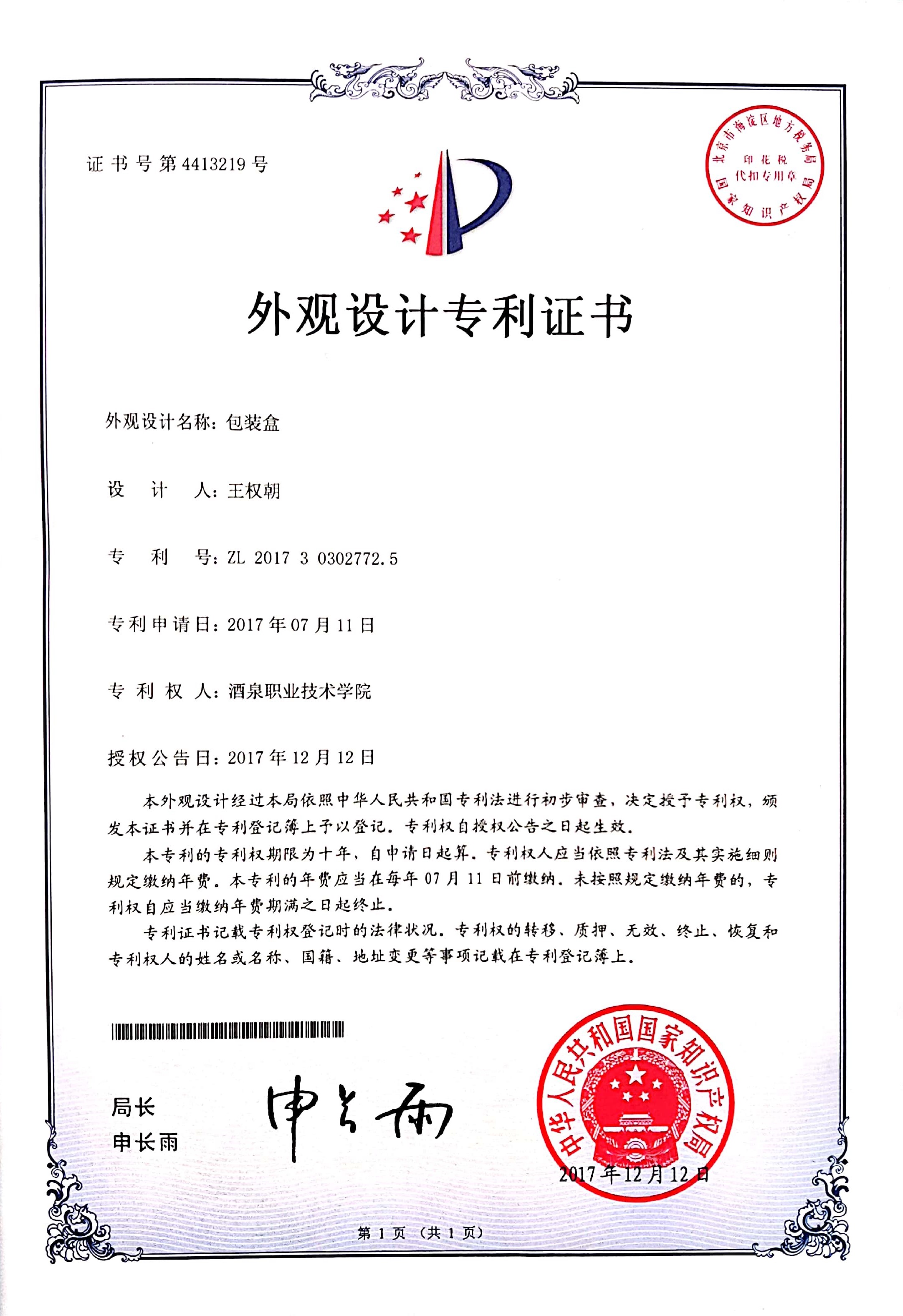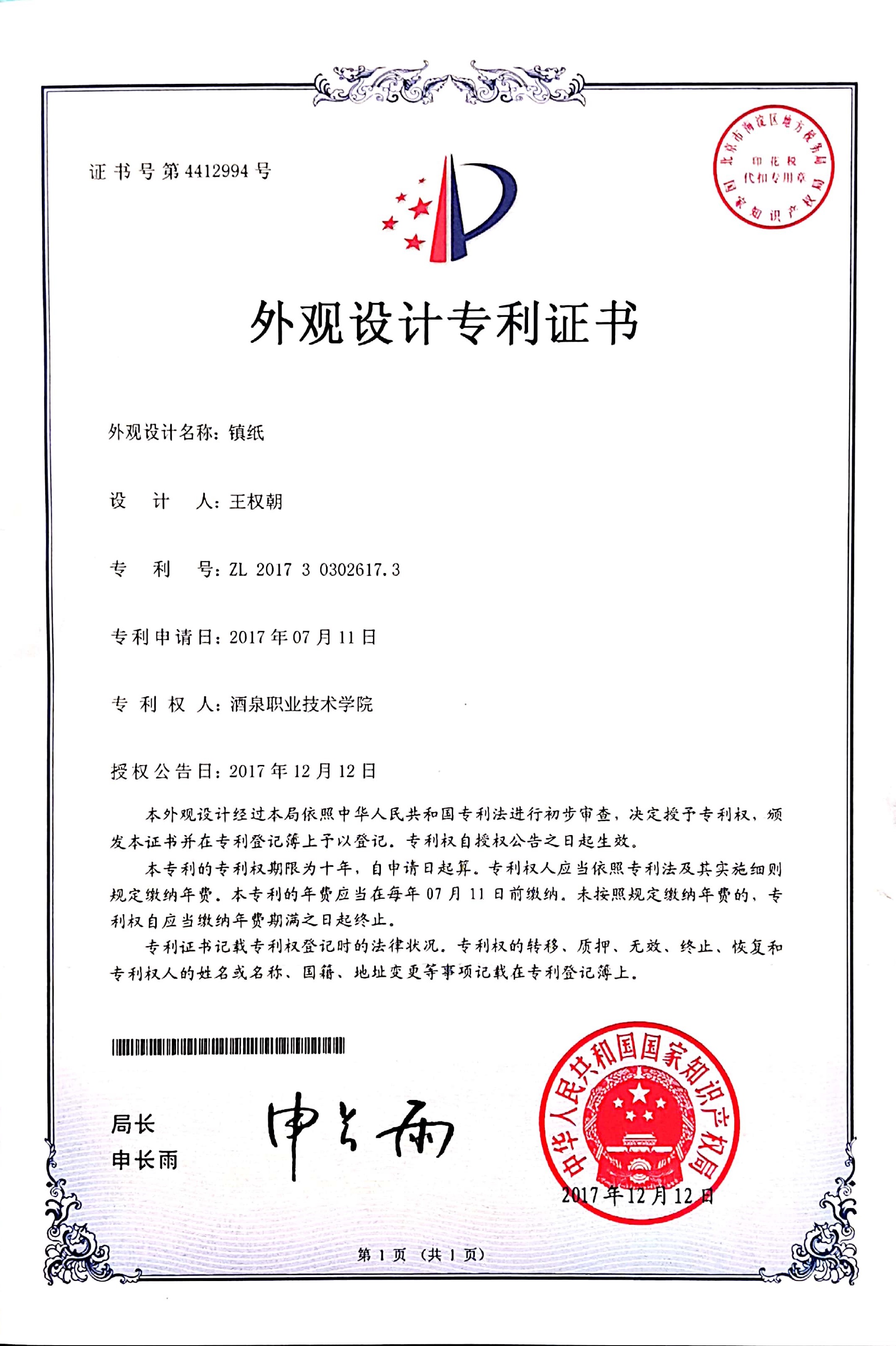专利证书