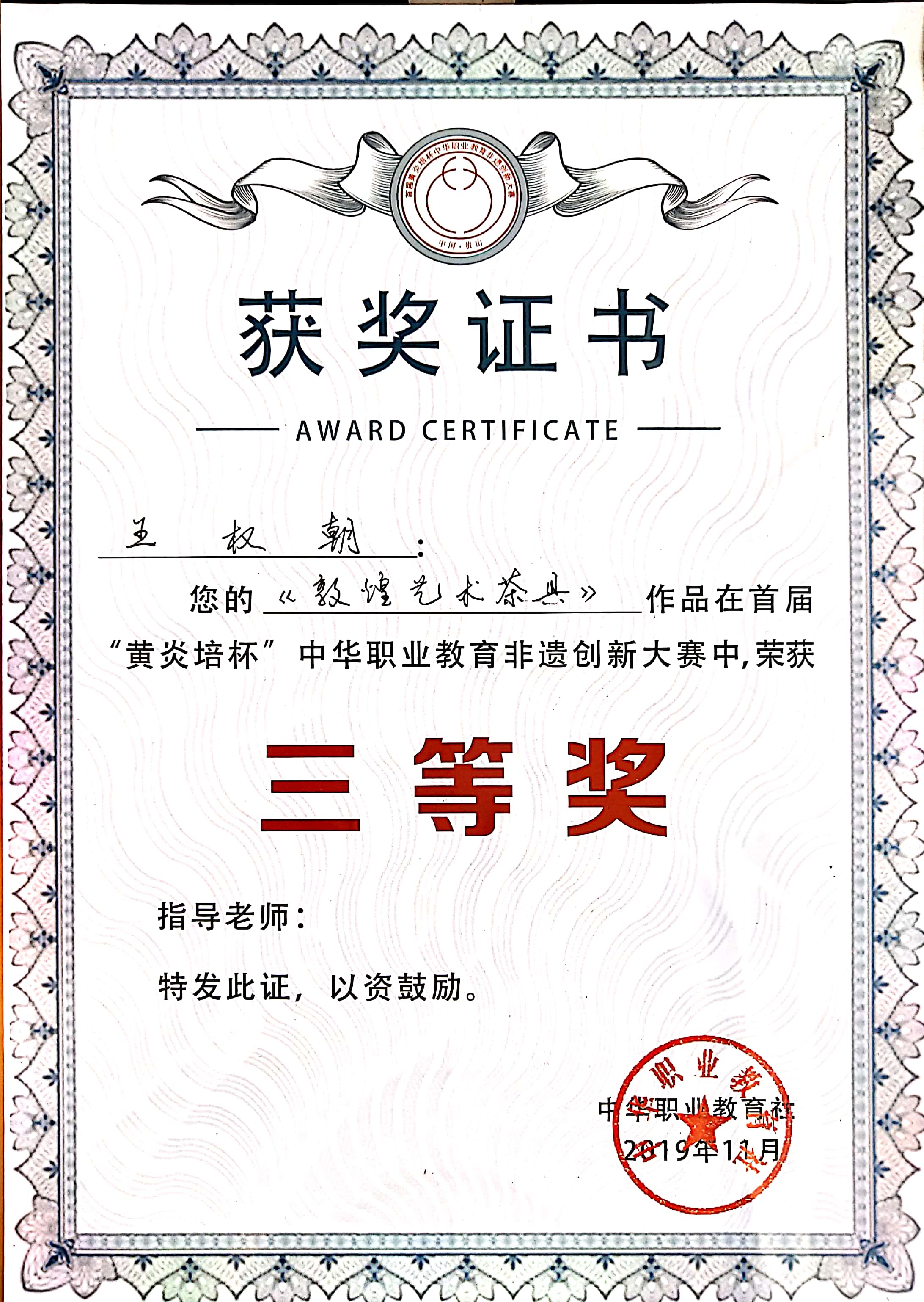 获奖证书